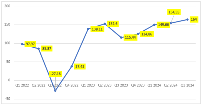 De wereldwijde (indicatieve) chemiemarge – ruwweg het verschil tussen de inkoopprijs van de energie en verkoopprijs van de plasticgrondstof – klimt uit een diep dal. Eind van het derde kwartaal stond de marge op 164 dollar per ton product. Op Shells beleggersdag (Capital Markets Day), in juni 2023, bleek dat een marge van rond de 200 dollar nodig is om een goede boterham te kunnen verdienen (midden bandbreedte 150 tot 250 dollar).